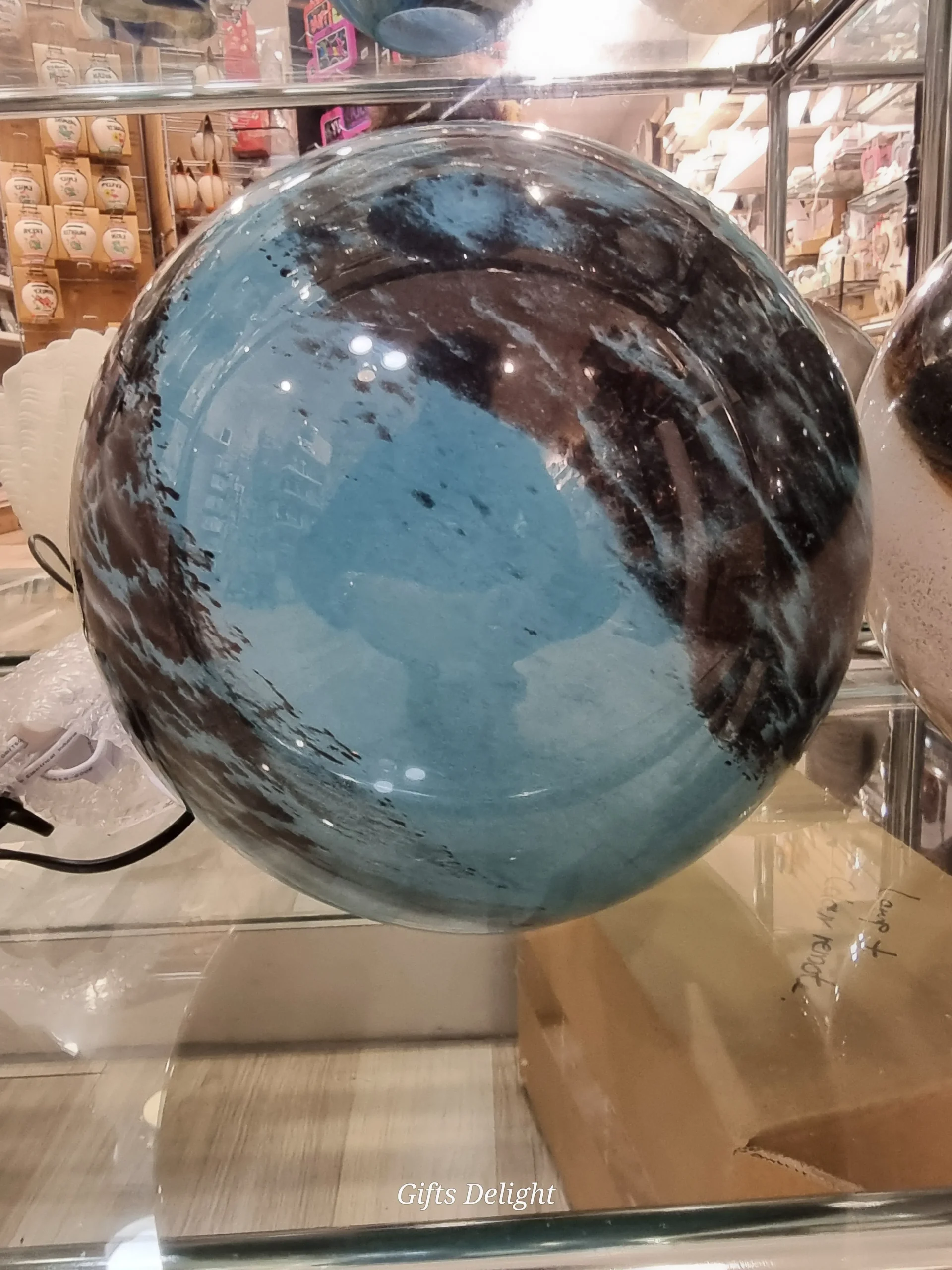 Every Handmade Globe Lamp is meticulously created by skilled artisans who take pride in every detail. The handcrafted globe design ensures that no two lamps are ever identical. Its turquoise and black tones blend together beautifully, giving the lamp a distinctive character that stands out while still complementing a wide range of interior styles — from modern minimalist to eclectic and artistic.